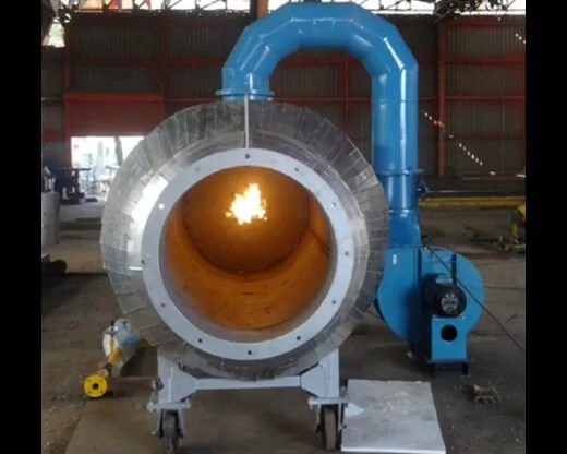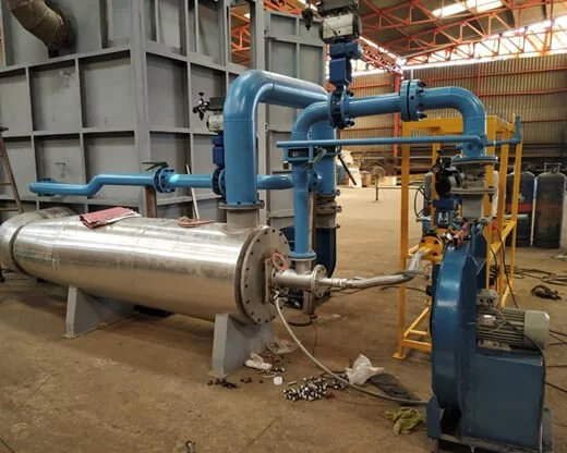 The combustion chamber and heat exchanger shall is housed in MS or SS duct. At one end of the duct, an air circulation blower is fitted. The fan blow air over the heat exchanger and combustion chamber. After passing over it, it will be heated to the desired temperature required for the process.