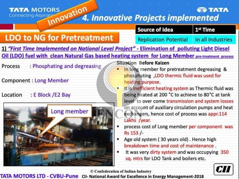 Thermic fluid heater is a highly inefficient way of heating the tanks as we have to increase and maintain the temperature of thermic fluid to 200 C to get a temperature of 80 C in the phosphating tanks to overcome transmission losses and then pumps are required to transfer the thermic fluid from thermopack to the utility and as there are lot of moving parts it requires a lot of real-estate and maintenance.