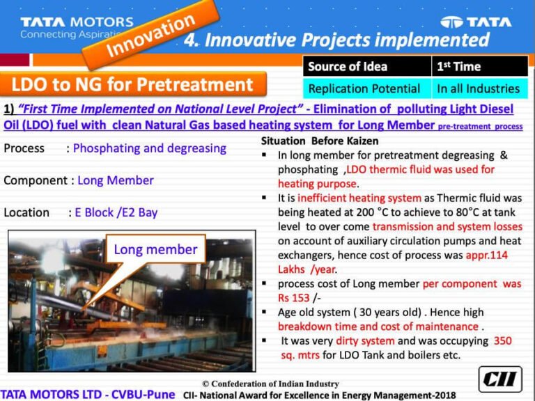 Thermic fluid heater is a highly inefficient way of heating the tanks as we have to increase and maintain the temperature of thermic fluid to 200 C to get a temperature of 80 C in the phosphating tanks to overcome transmission losses and then pumps are required to transfer the thermic fluid from thermopack to the utility and as there are lot of moving parts it requires a lot of real-estate and maintenance.
